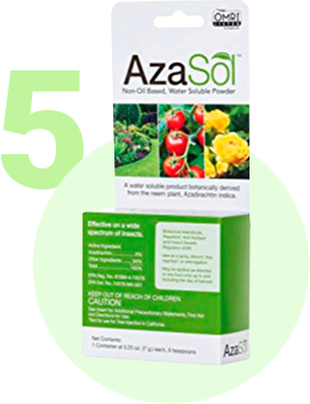 El árbol de Neem es nativo de la India, Azadirachta indica. Las semillas contienen el ingrediente activo Azadiractina, el cual es un regulador de crecimiento, evita que el estado larval se alimente, acción anti alimentaria, es ovicida y repelente. Azasol no es un aceite como el usado ampliamente en cultivos orgánicos, el cual contiene la Azadiractina en bajas concentraciones y puede causar quemaduras en el cultivo aplicado.